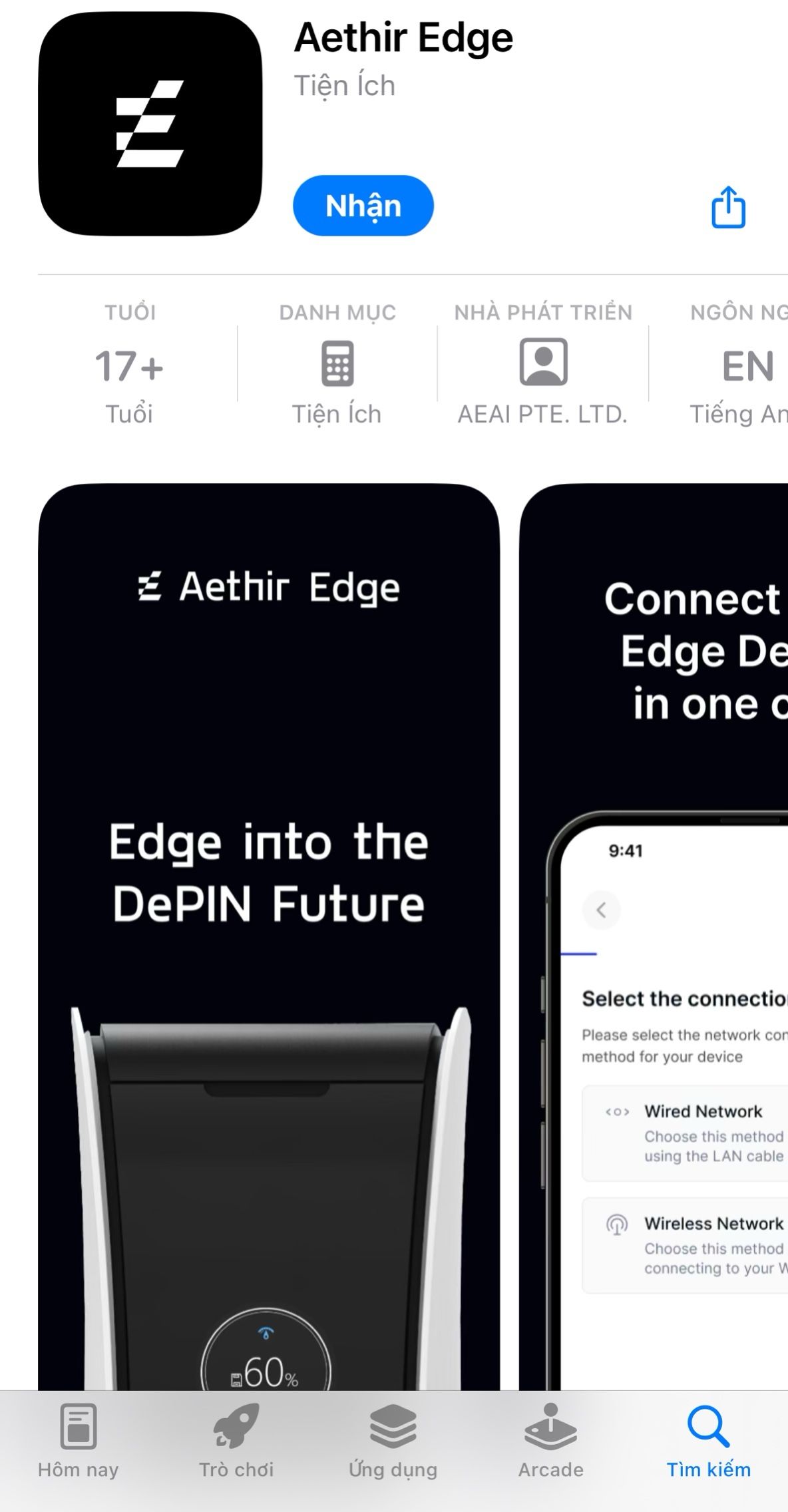 Bước 2: Cài đặt ứng dụng Aethir Edge