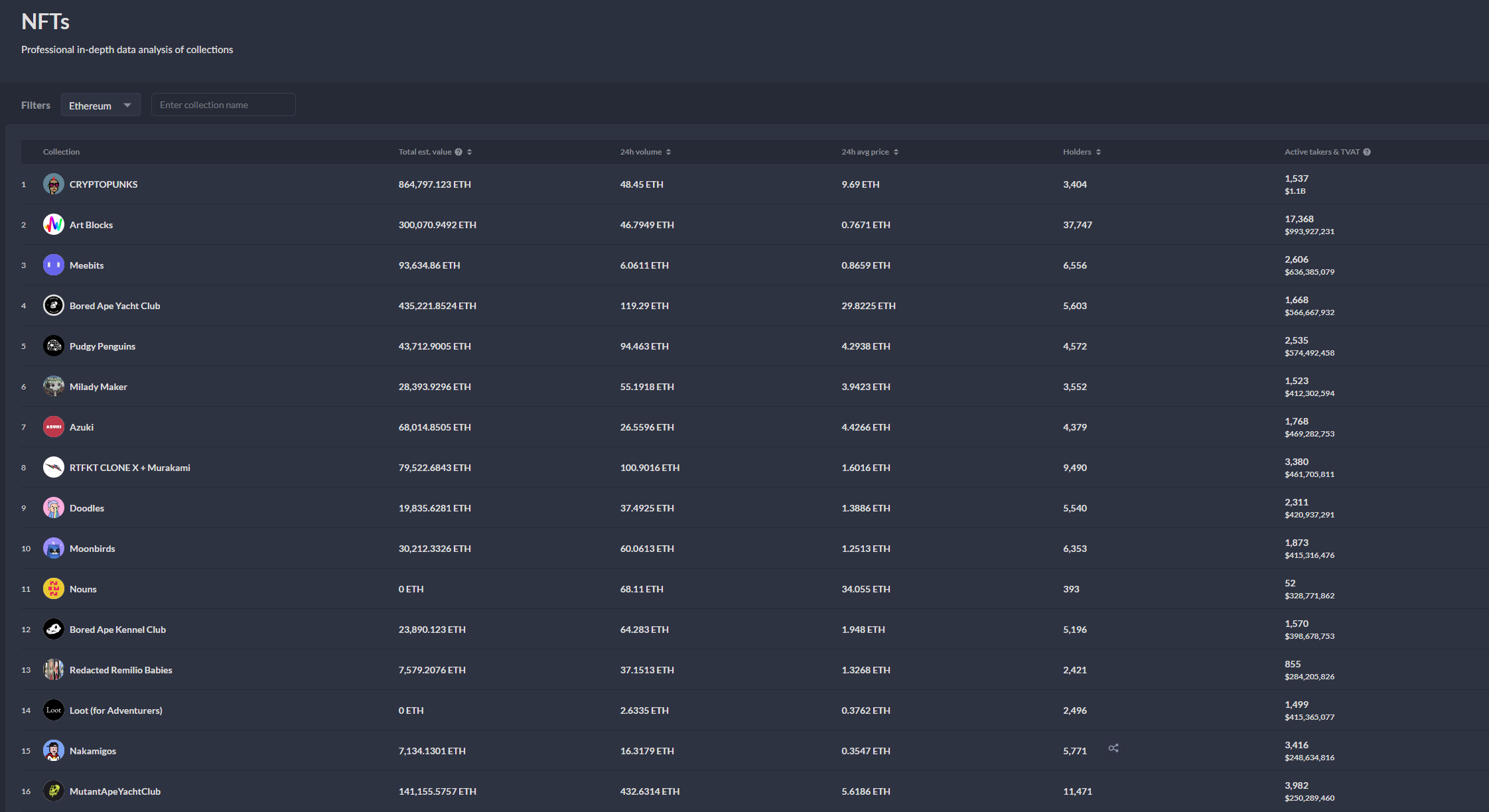 NFTs: Phân tích dữ liệu chuyên sâu của các bộ sưu tập NFTs (hiện tại chỉ đang hỗ trợ mạng lưới ETH)