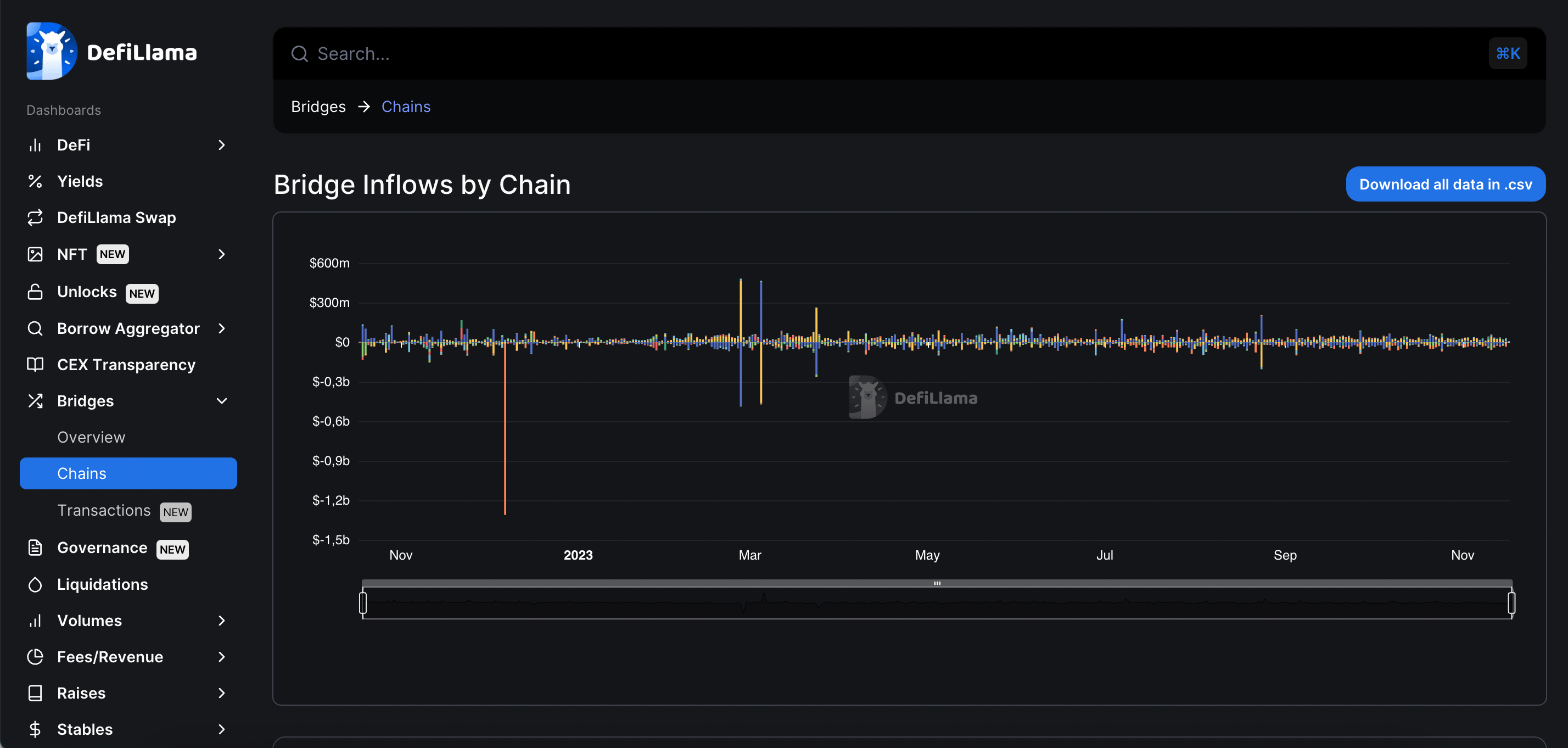 Bridge là cầu nối giúp chuyển đổi tài sản giữa các mạng lưới blockchain khác nhau. DefiLlama thống kê toàn bộ thị trường bridge theo 3 tiêu chí: tổng quan thị trường, mạng lưới và số lượng giao dịch.