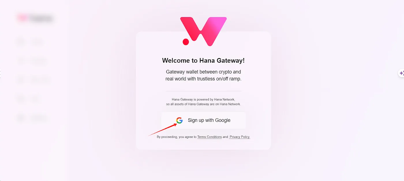 - Bước 1: Truy cập https://gateway.hana.network/login, lựa chọn đăng nhập bằng Google và cài đặt mật khẩu