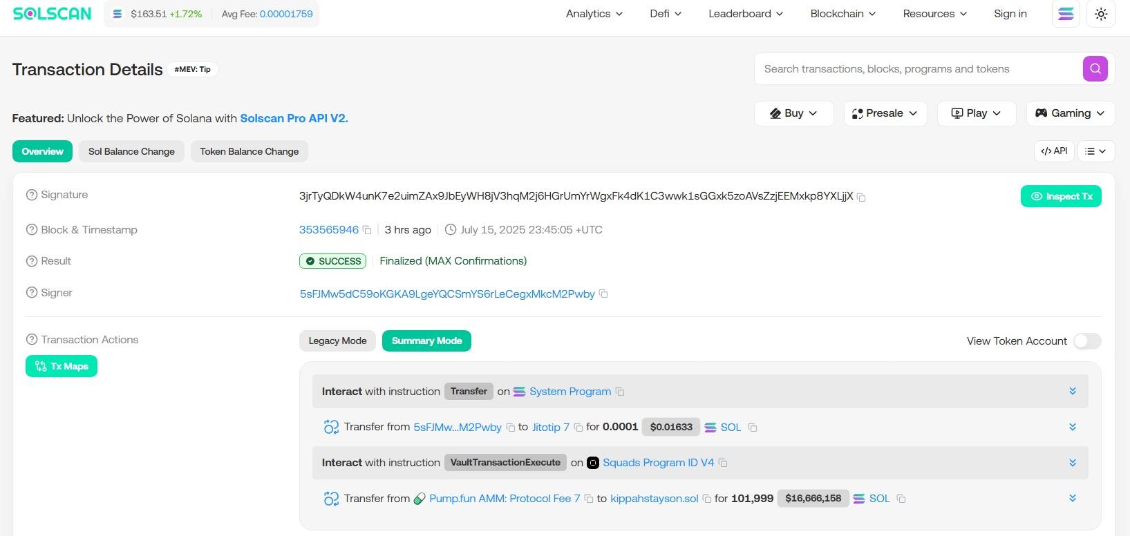 Cụ thể, trong tổng số 30 triệu USD chuyển vào ví mua lại, pumpfun đã chi 118.351 SOL (tương đương 19,26 triệu USD) để mua lại gần 3 tỷ token PUMP, với giá trung bình khoảng 0,0064 USD/PUMP.