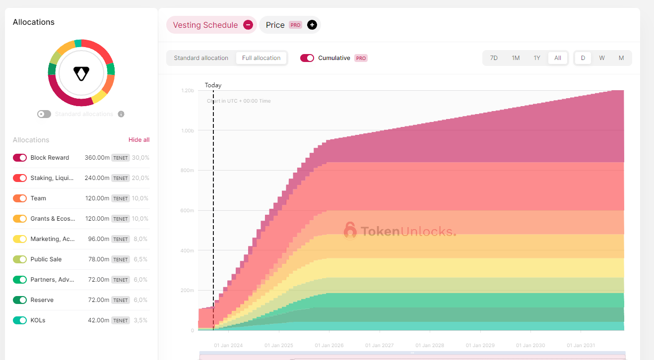Hiện tại trong tokenomics dự án đưa con số trong block reward (thưởng bằng $TENET) lên đến 30% , điều này khiến áp lực bán lên giá token TENET sẽ nhiều hơn , dự án cần tính toán kĩ để không ảnh hưởng quá mạnh lên giá cả, bởi giá cả luôn là một phần rất mạnh của marketing.