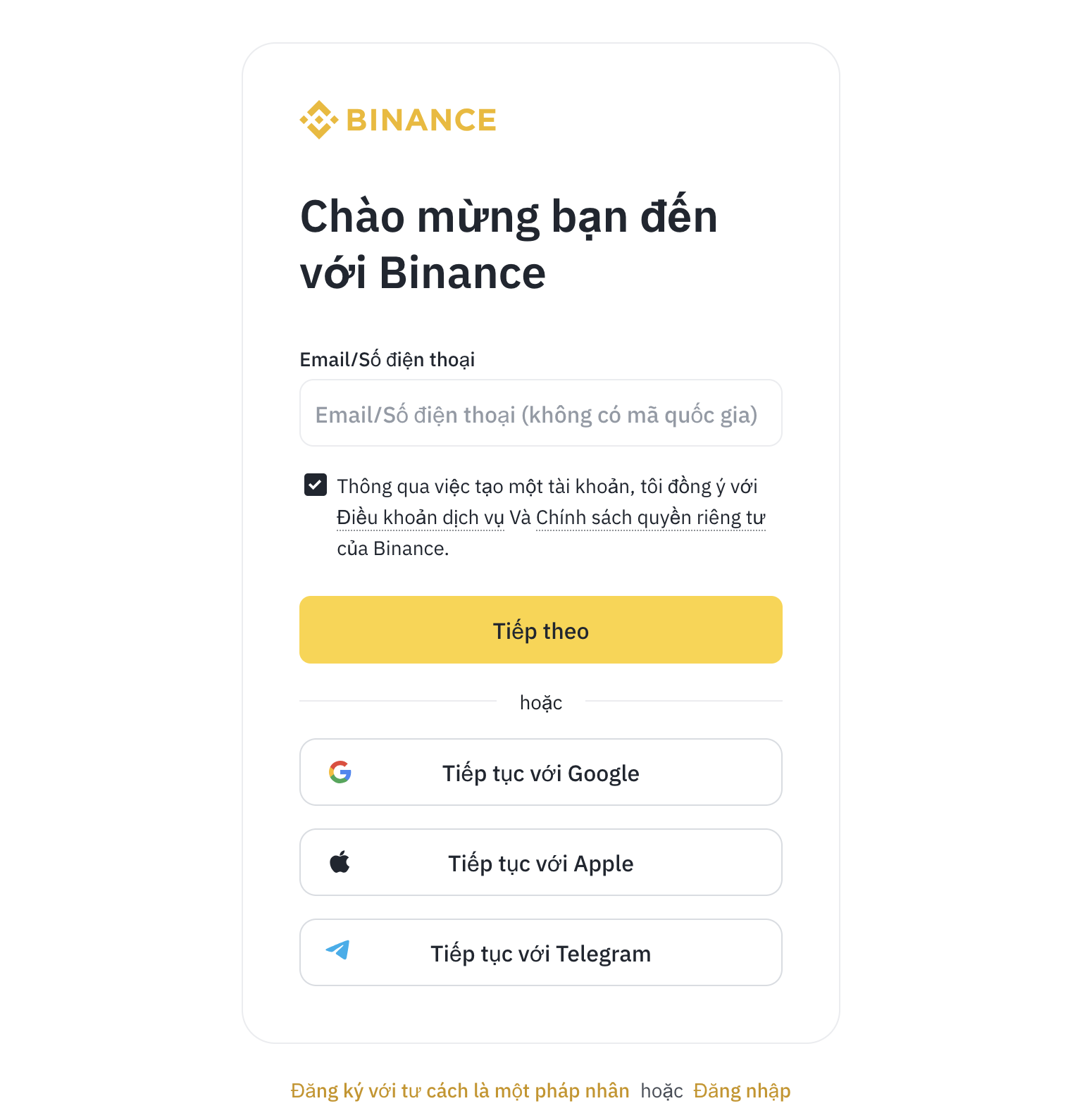 Đăng nhập vào tài khoản Binance của bạn. Nếu chưa có tài khoản, hãy đăng ký và hoàn tất xác minh KYC.