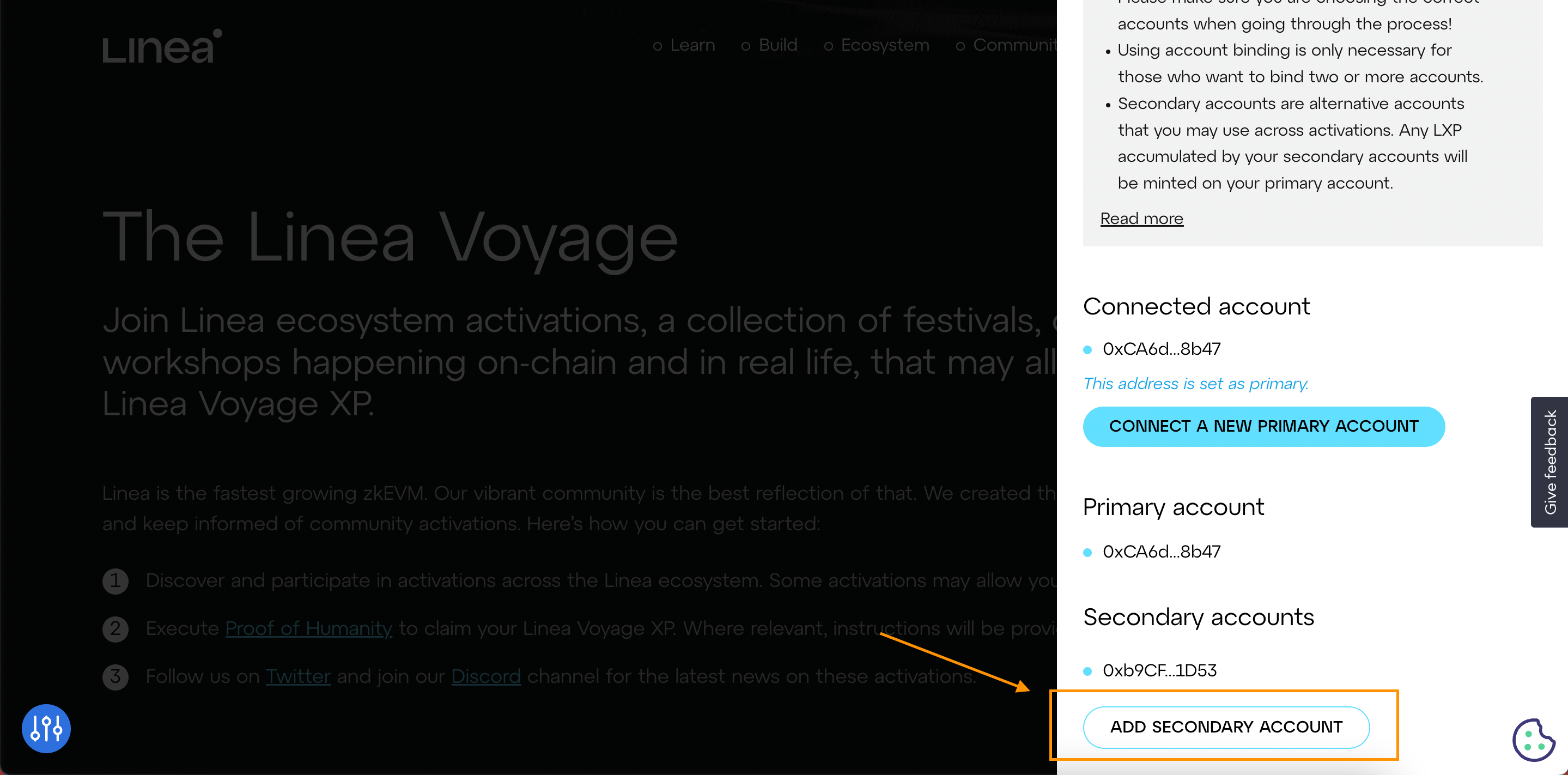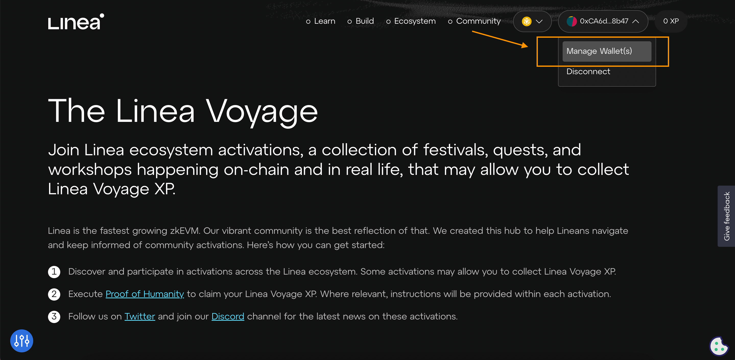 Bước 1: Truy cập https://linea.build/activations