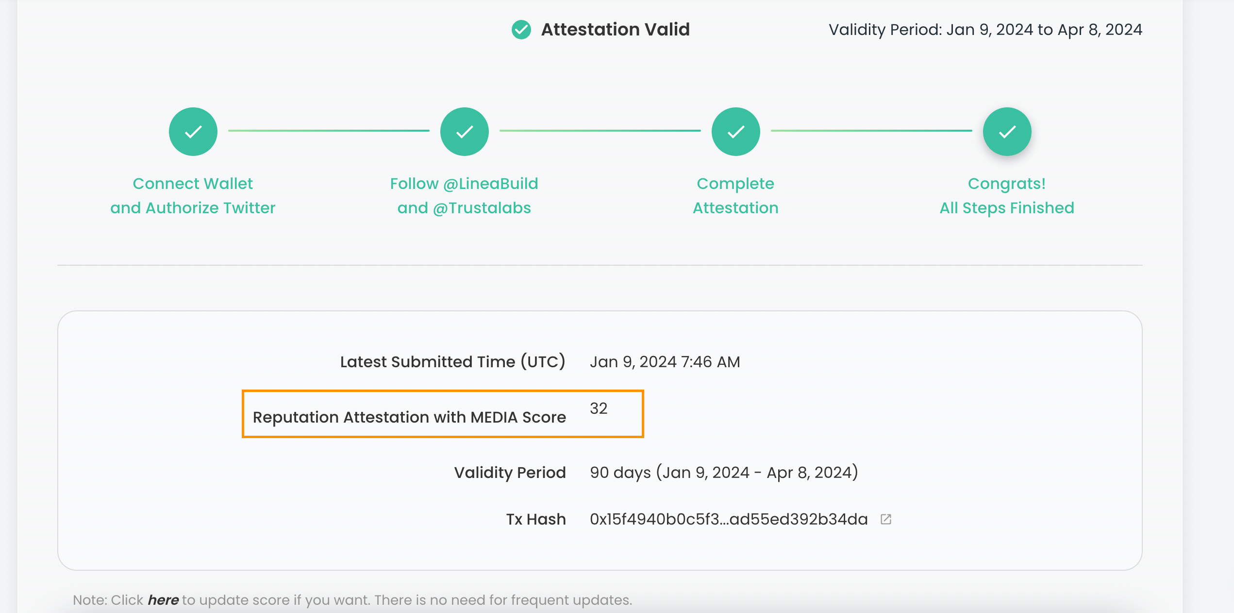 Bước 3: Chọn xác thực trên Trusta POH Attestation và OxScore (Group B)