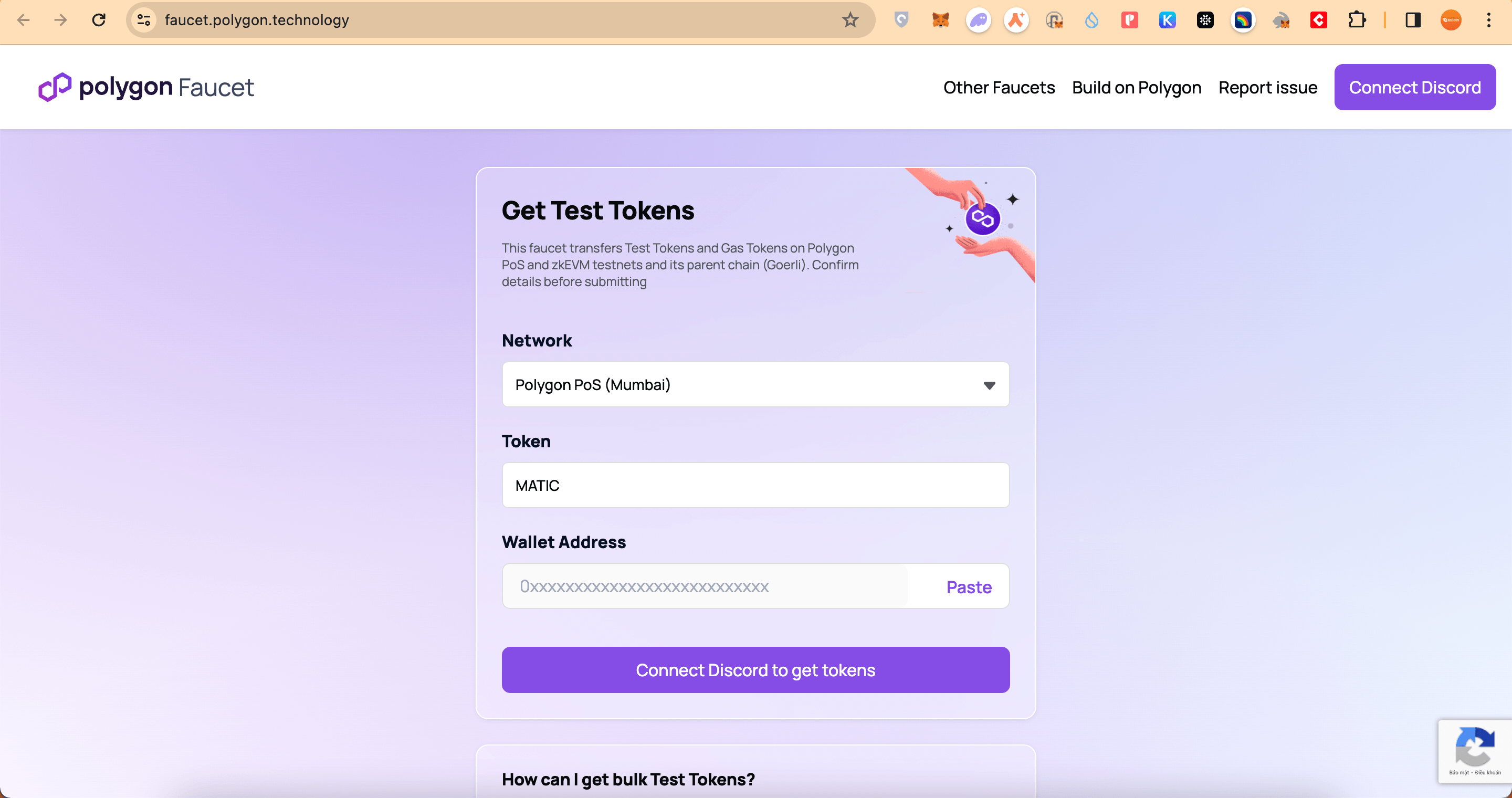 Bước 2: Thêm mạng Polygon Mumbai Testnet và faucet token