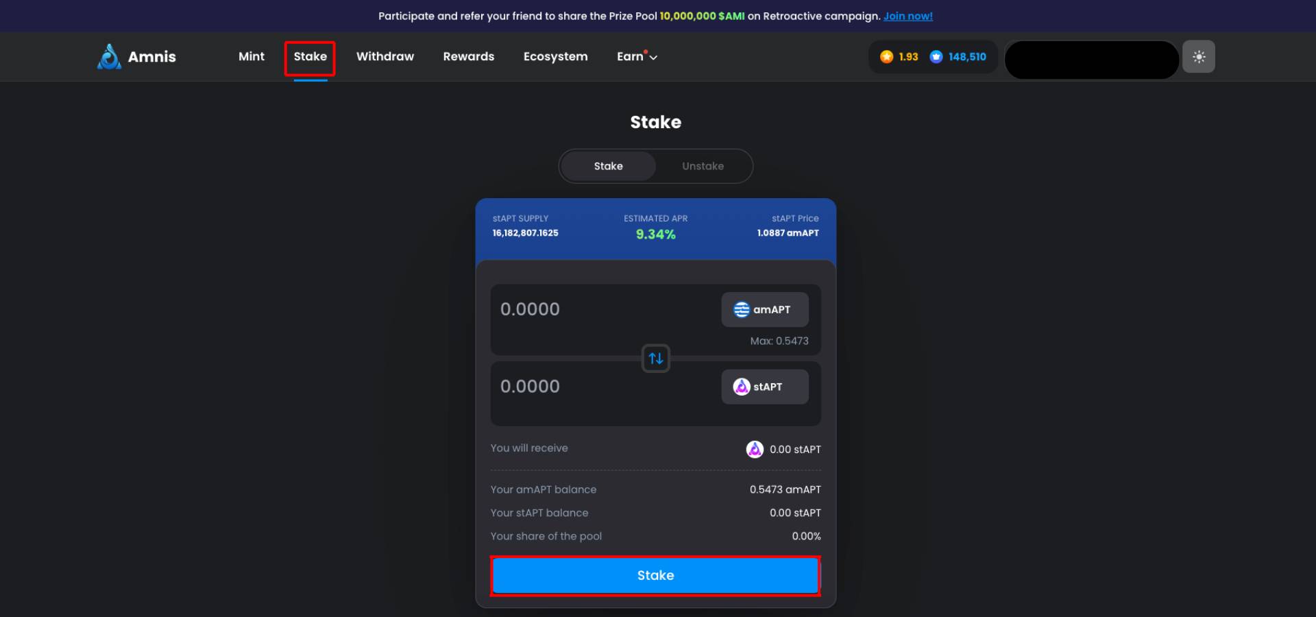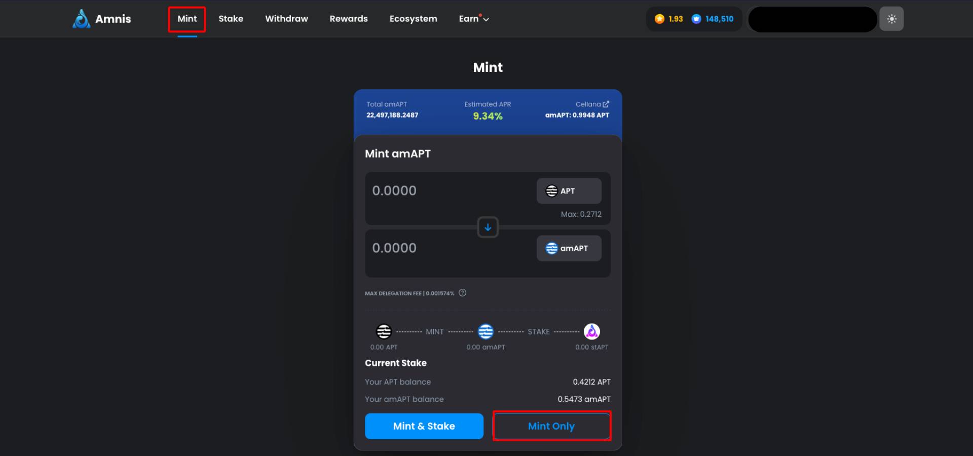 Với Amnis Finance, khi stake APT (APY hiện tại là 11%) trong ứng dụng này, người dùng sẽ nhận được một token liquid staking từ phần APT đã stake và có thể khai thác lợi nhuận thông qua đó, cho phép họ vừa có thể kiếm được lợi nhuận khi stake APT và khi sử dụng ứng dụng DeFi.