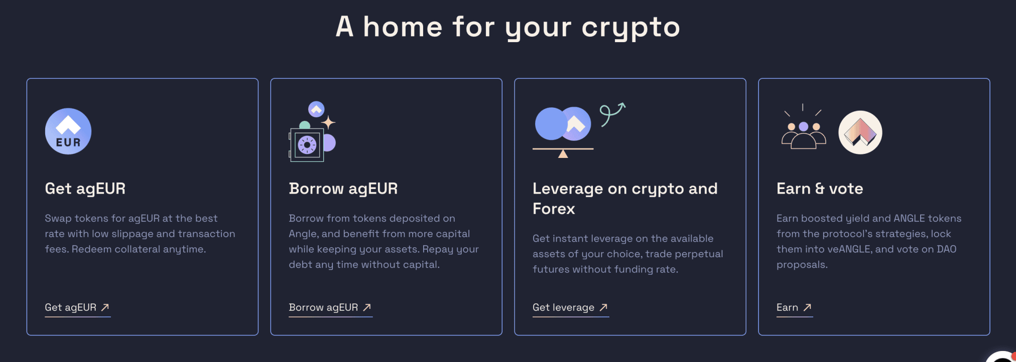 Ngoài sản phẩm chính là giao thức stablecoin, Angle Protocol còn cung cấp và phát triển các sản phẩm liên quan đến DeFi tạo thành một hệ sinh thái hiệu quả hơn cho người dùng: