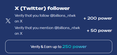Bước 3: Hoàn thành nhiệm vụ follow và đăng bài có tag tên Billions trên Twitter để nhận 250 point.