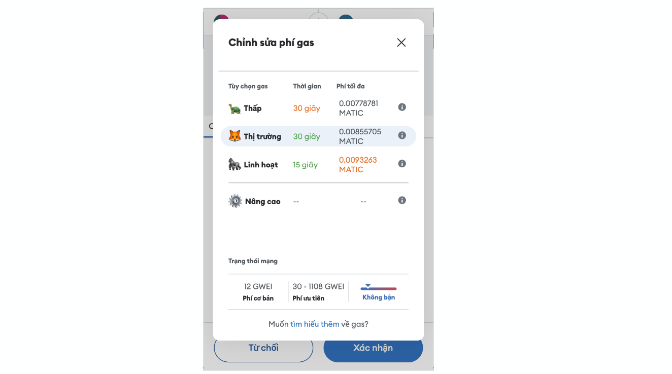 Điều chỉnh gas fee để giao dịch nhanh hơn: Các lệnh của người dùng khi thực hiện trên DEX phải chờ đợi các node trên blockchain xác nhận, điều này dẫn đến độ trễ tương đối khi giao dịch chờ được xác nhận. Nếu muốn đẩy nhanh tốc độ, bạn có thể điều chỉnh gas fee trên ví Metamask để giao dịch được thực thi nhanh hơn.