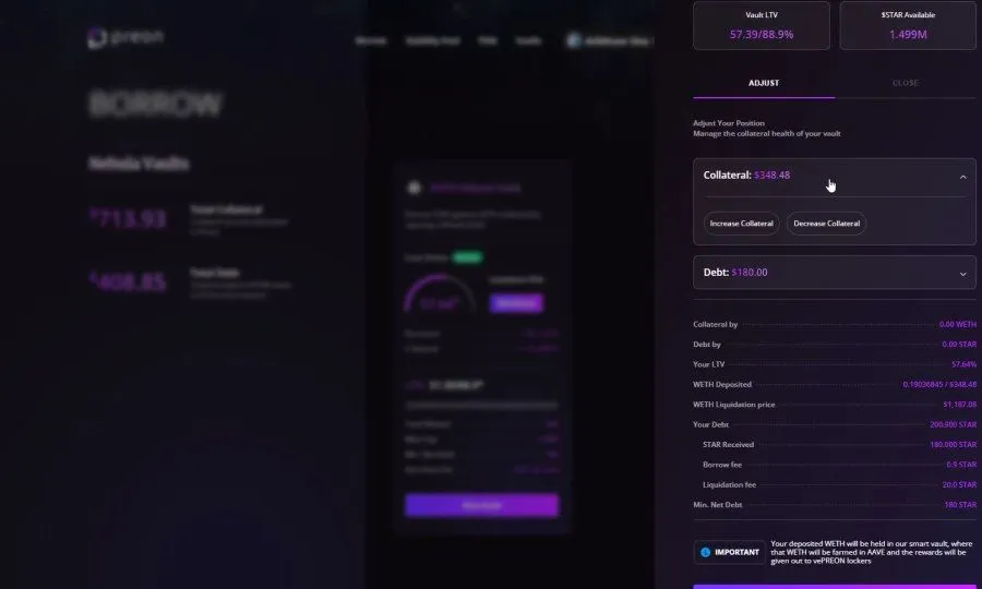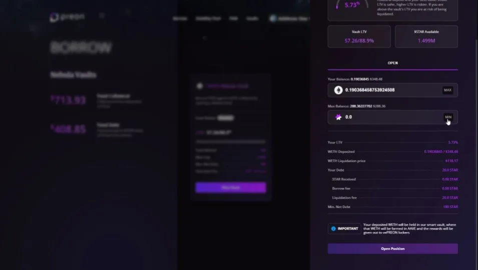 Các khoản vay trên Preon Finance sẽ được thanh toán bằng $STAR (stabelcoin được neo giá với USD do Preon Finance phát hành) với tỷ lệ thế chấp tối thiểu là 110%.