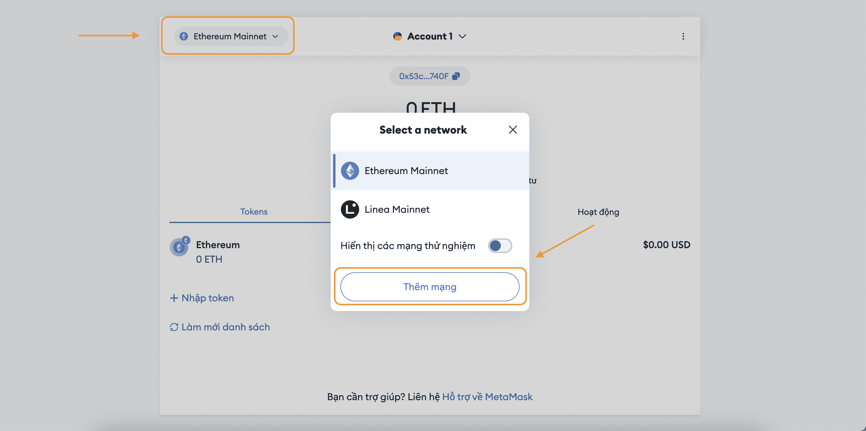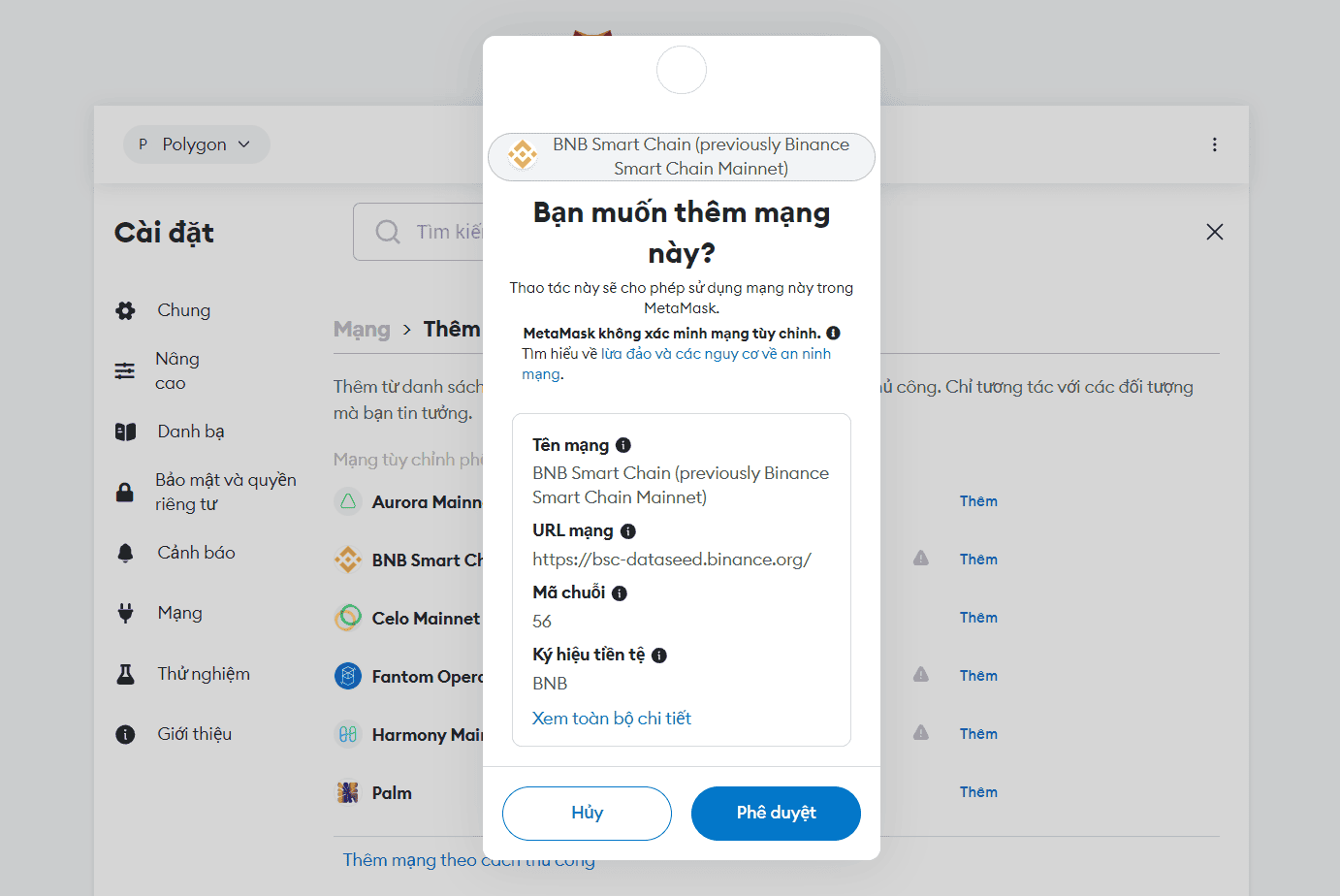 Bước 3: Chọn “Thêm mạng” và xác nhận tại ví MetaMask để hoàn thành