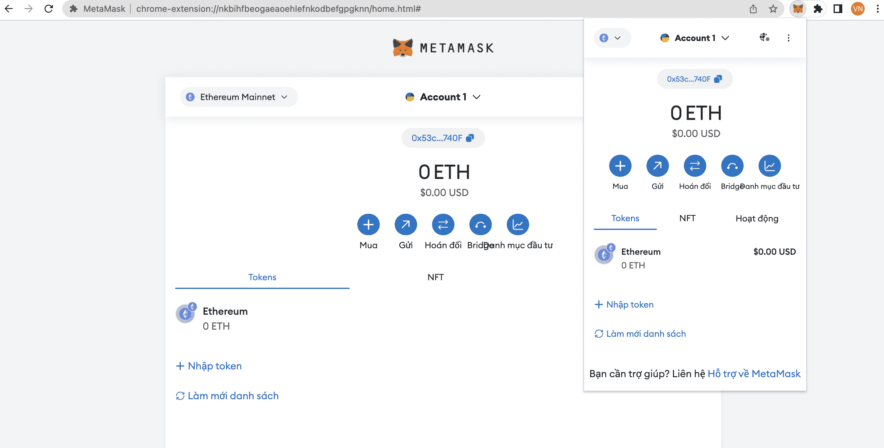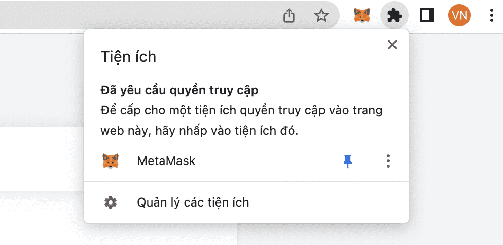 Khi bạn đã tạo hoặc khôi phục ví MetaMask thành công, bạn sẽ thấy biểu tượng MetaMask ở góc trình duyệt web của bạn. Nhấp vào biểu tượng đó để mở MetaMask.