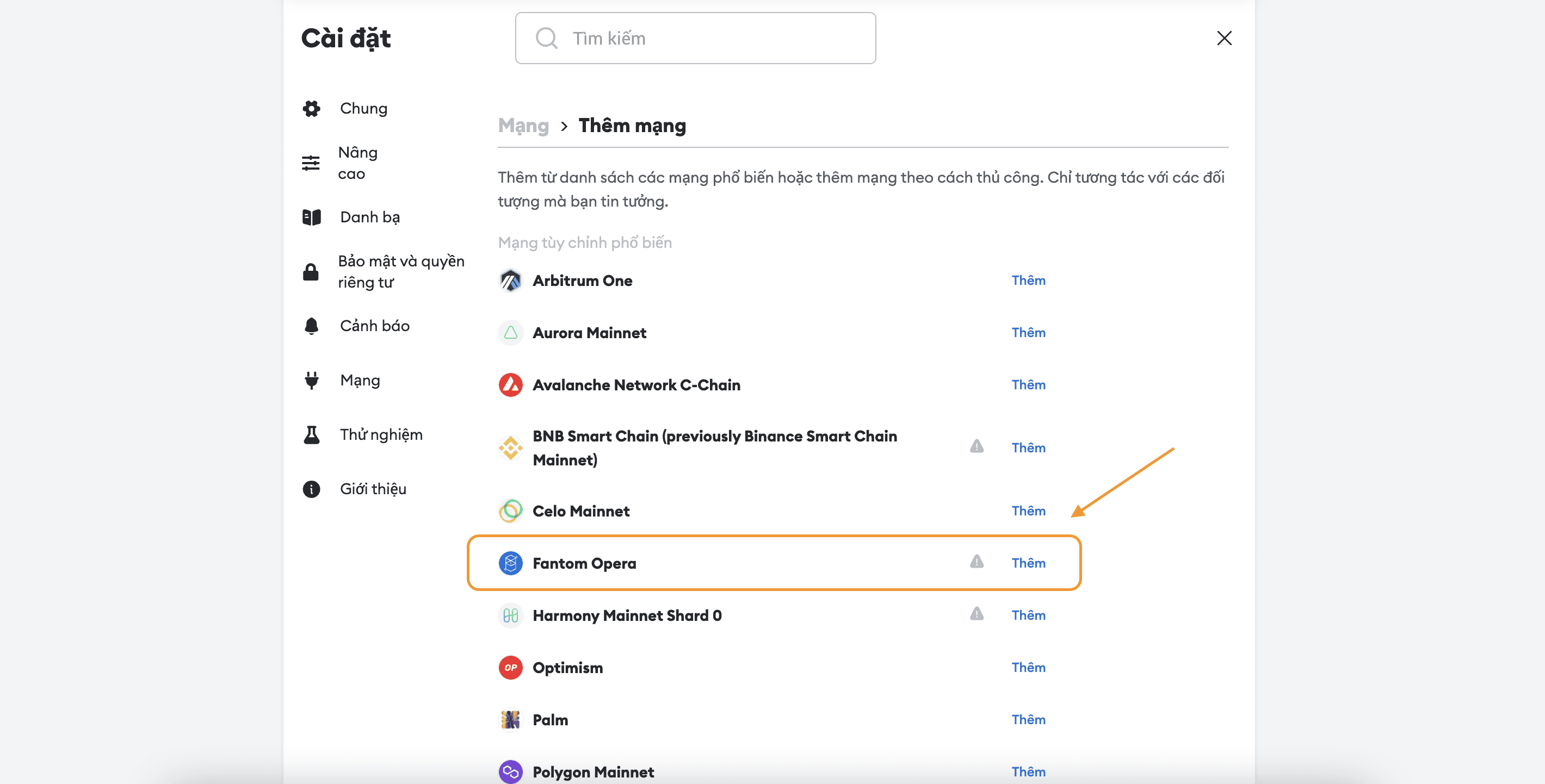 Bước 2: Thêm mạng Fantom vào MetaMask