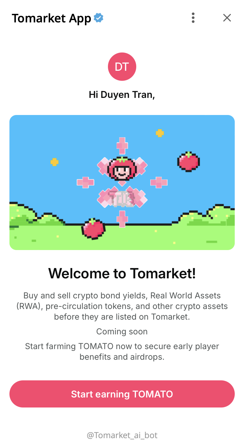 Để không bỏ lỡ cơ hội sở hữu token TOMATO, bạn có thể tham gia các hoạt động kiếm token trên nền tảng Tomarket với các bước hướng dẫn đơn giản sau: